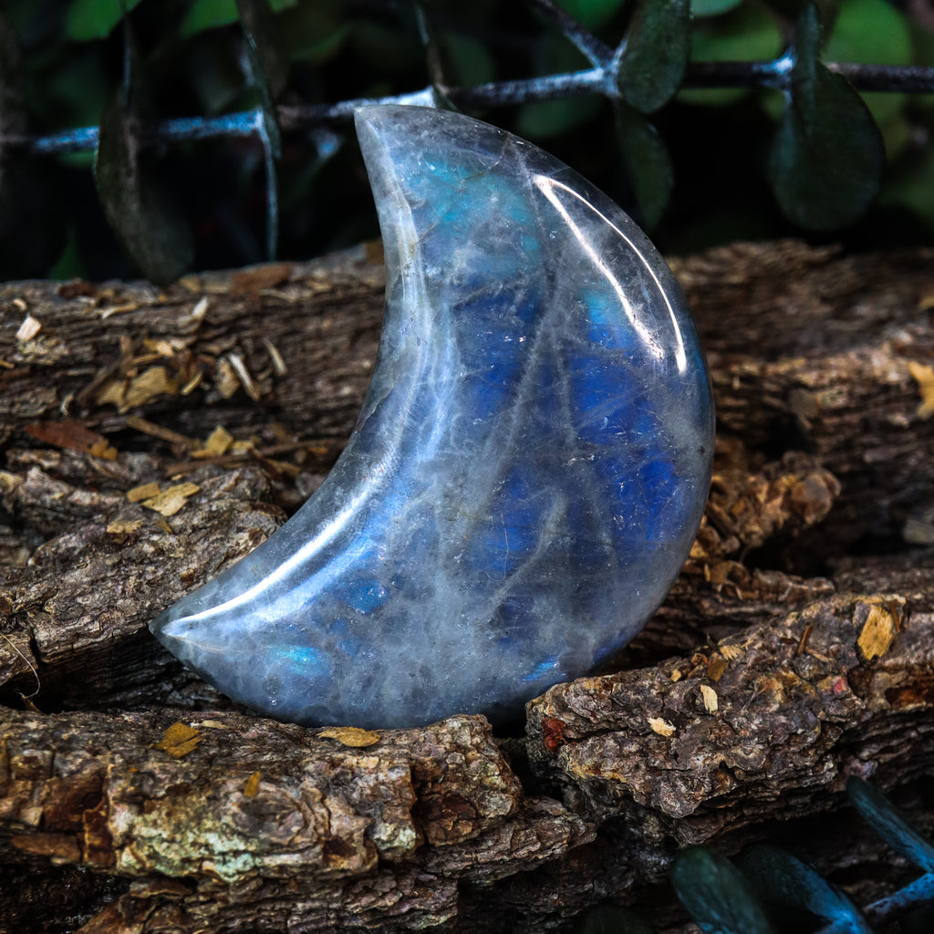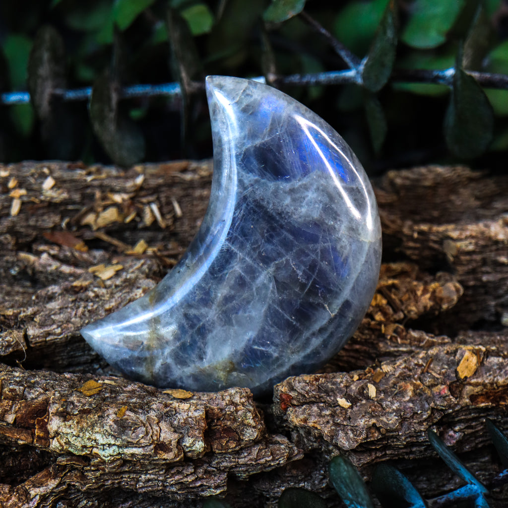 A beautifully polished hand-carved Labradorite crescent moon.