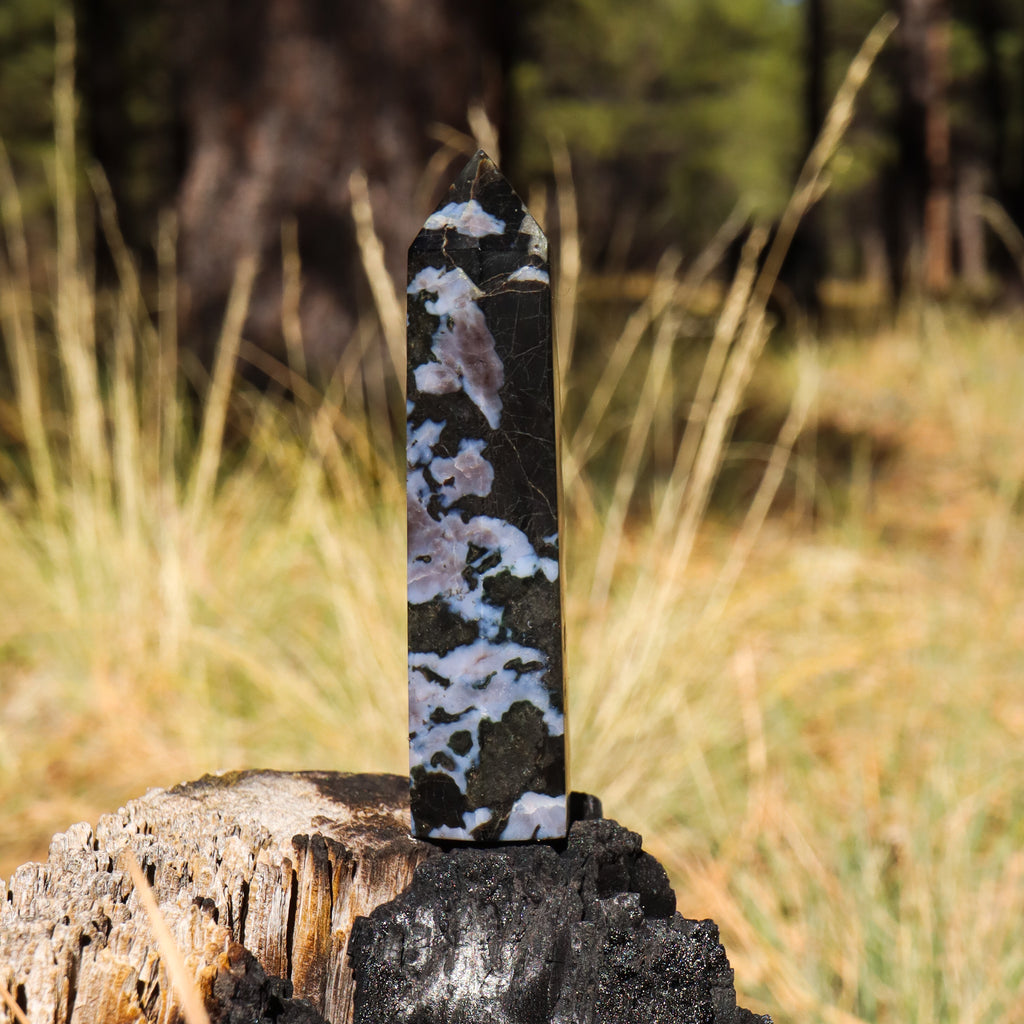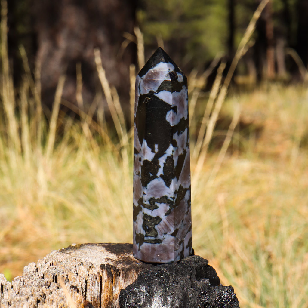 A beautiful hand-carved Mystic Merlinite Point. Crystal Points are incredibly useful in many respects, including as decor elements, ritual essentials, and metaphysical protection. Their carved shape makes Crystal Points natural energy cleansers, actively absorbing the negative energy of their surrounding space.
