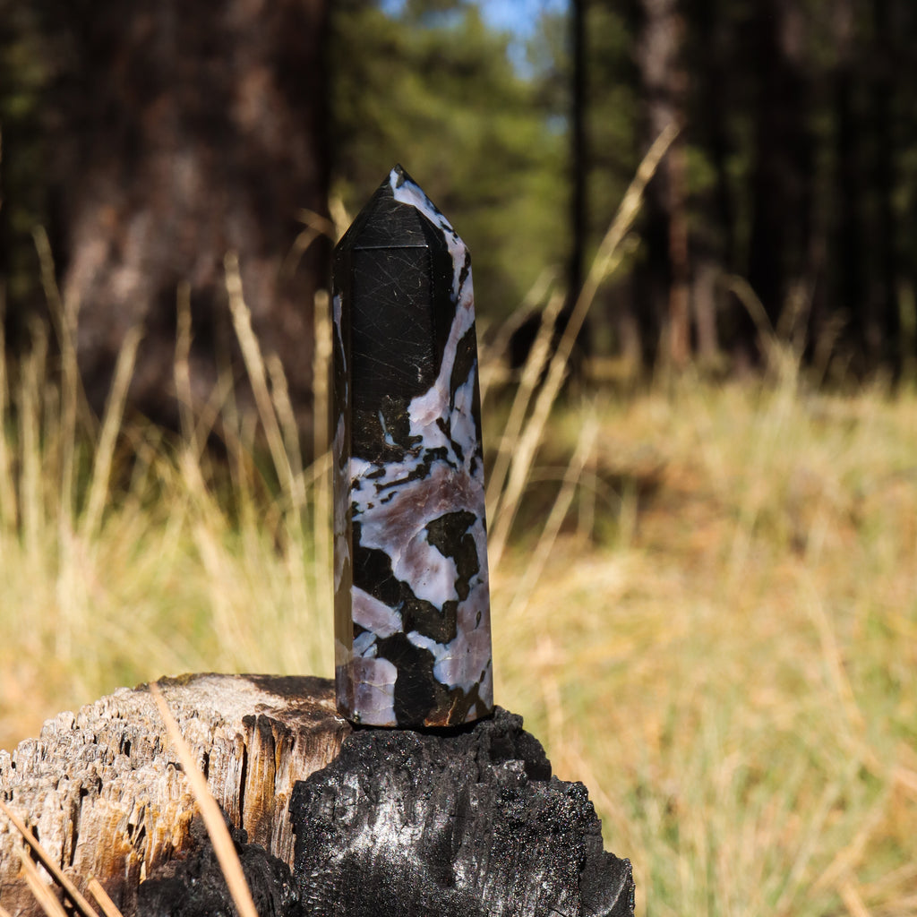 A beautiful hand-carved Mystic Merlinite Point. Crystal Points are incredibly useful in many respects, including as decor elements, ritual essentials, and metaphysical protection. Their carved shape makes Crystal Points natural energy cleansers, actively absorbing the negative energy of their surrounding space.