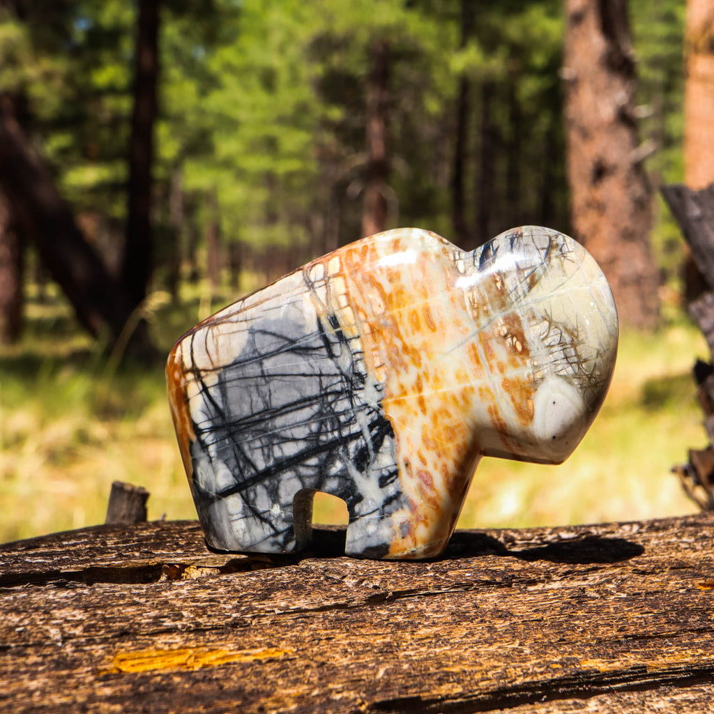 A beautiful, hand-carved lone Petrified Wood buffalo.