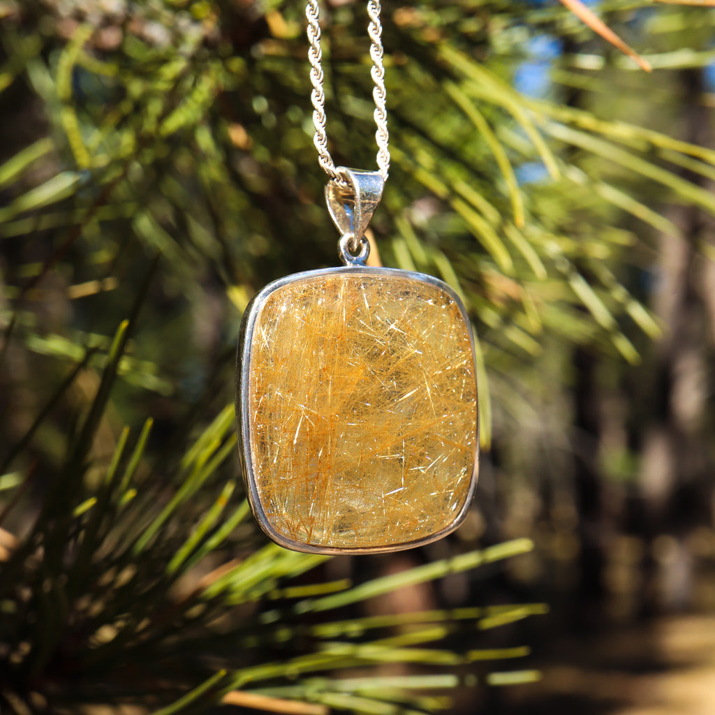 A Gold Rutile Quartz pendant set in Sterling Silver. Chain not included.