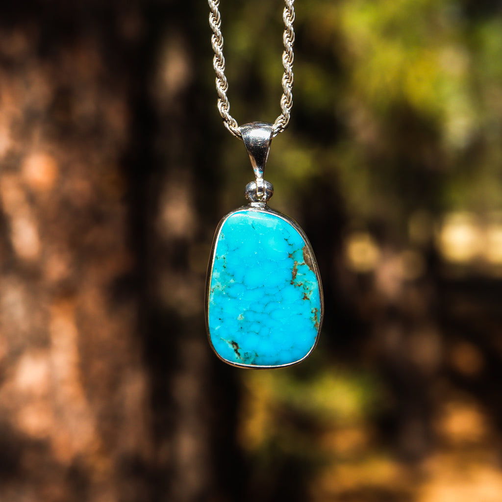 Beautiful Sleeping Beauty Turquoise pendant set in shining Sterling Silver. Sleeping Beauty Turquoise is found in Globe, Arizona. Chain not included